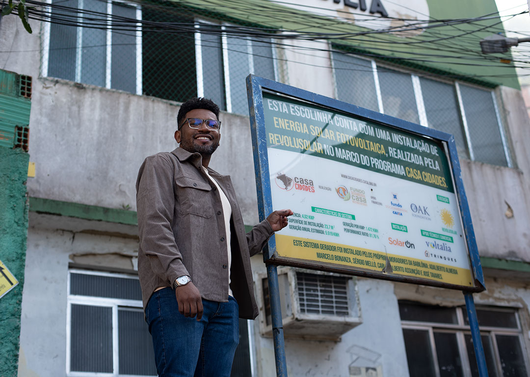 Dois anos depois, veio um momento de virada: com o primeiro apoio financeiro, feito pelo Fundo Casa, a ONG construiu uma usina solar na Escola Comunitária Tia Percília, também no Morro da Babilônia. Mais do que garantir energia para a escola, a conquista representou um novo momento para a instituição.
