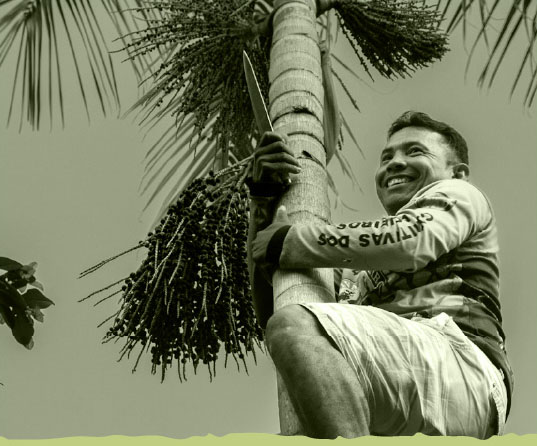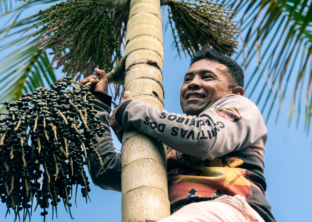 O trabalho da cooperativa cresceu rápido. Novos apoios possibilitaram a construção de poços artesianos, que hoje abastecem as casas da comunidade e a Agroindústria Florestal. E os horizontes se expandiram ainda mais: preocupados em regenerar a Amazônia, passaram a plantar mudas de árvores frutíferas para reflorestar áreas desmatadas pelo extrativismo, garimpo ou fogo.