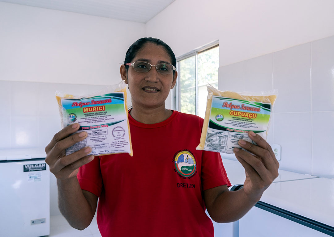 Em 2020, a comunidade vislumbrou um novo caminho. Com apoio do Fundo Casa, fundaram a Cooperativa Agroextrativista de Surucuá (Cooprasu). Investindo em maquinário, passaram a processar e congelar as frutas, que, resfriadas, puderam viajar pelo rio até a cidade de Santarém, chegando ao consumidor final sem atravessadores.